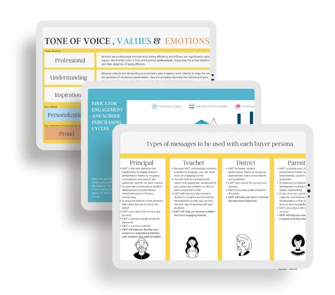 This toolkit was created to support school-targeted communication, aligning message types with key decision-makers. It also accounts for school purchasing cycles and emotional drivers, with guidance on tone of voice, values, and timing.
